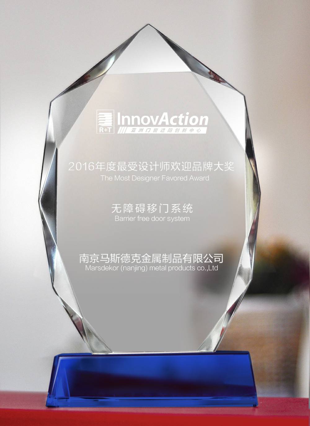 泉州昌盛亲子教育服务有限公司荣获2016R+T ASIA最受设计师欢迎品牌大奖。